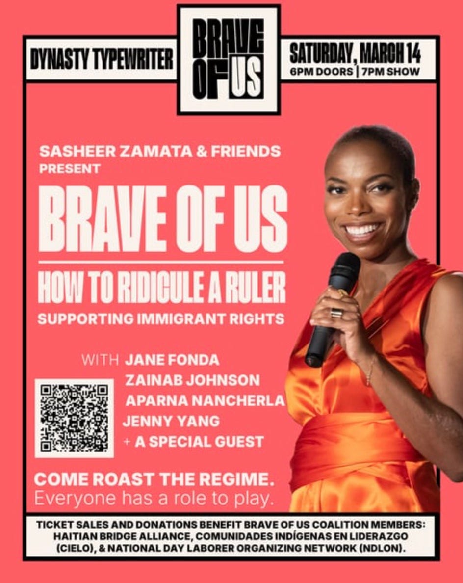 Join Brave of Us for a night of laughs, hosted by Sasheer Zamata, and leave knowing your contribution helps power organizations championing immigrant rights.